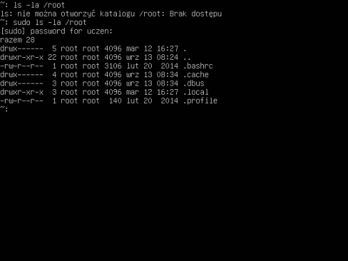 Będąc zalogowanym jako inny użytkownik, chcąc działać z pełnymi uprawnieniami możemy przelogować się na konto root za pomocą polecenia su root. Czynności będziesz wykonywać jako root aż do momentu, gdy nie użyjesz polecenia exti lub logout.