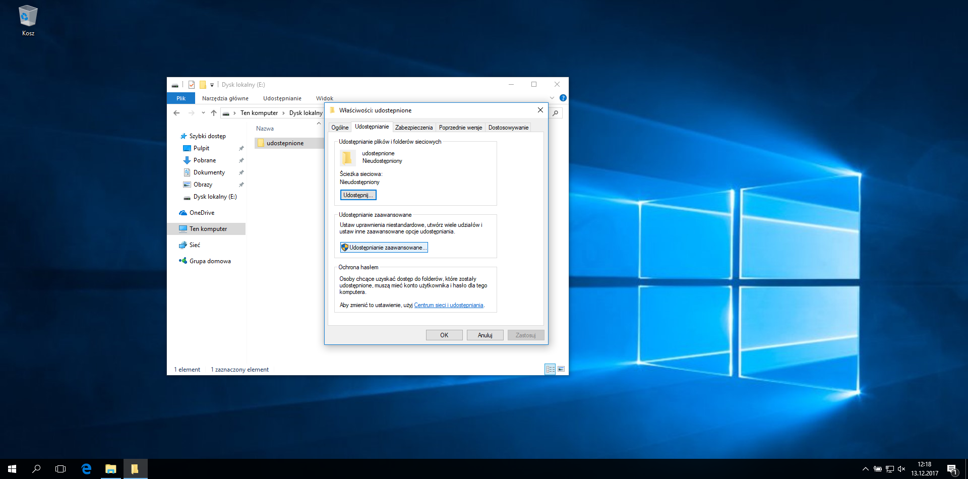 - W oknie właściwości przejdź do zakładki Udostępnianie.