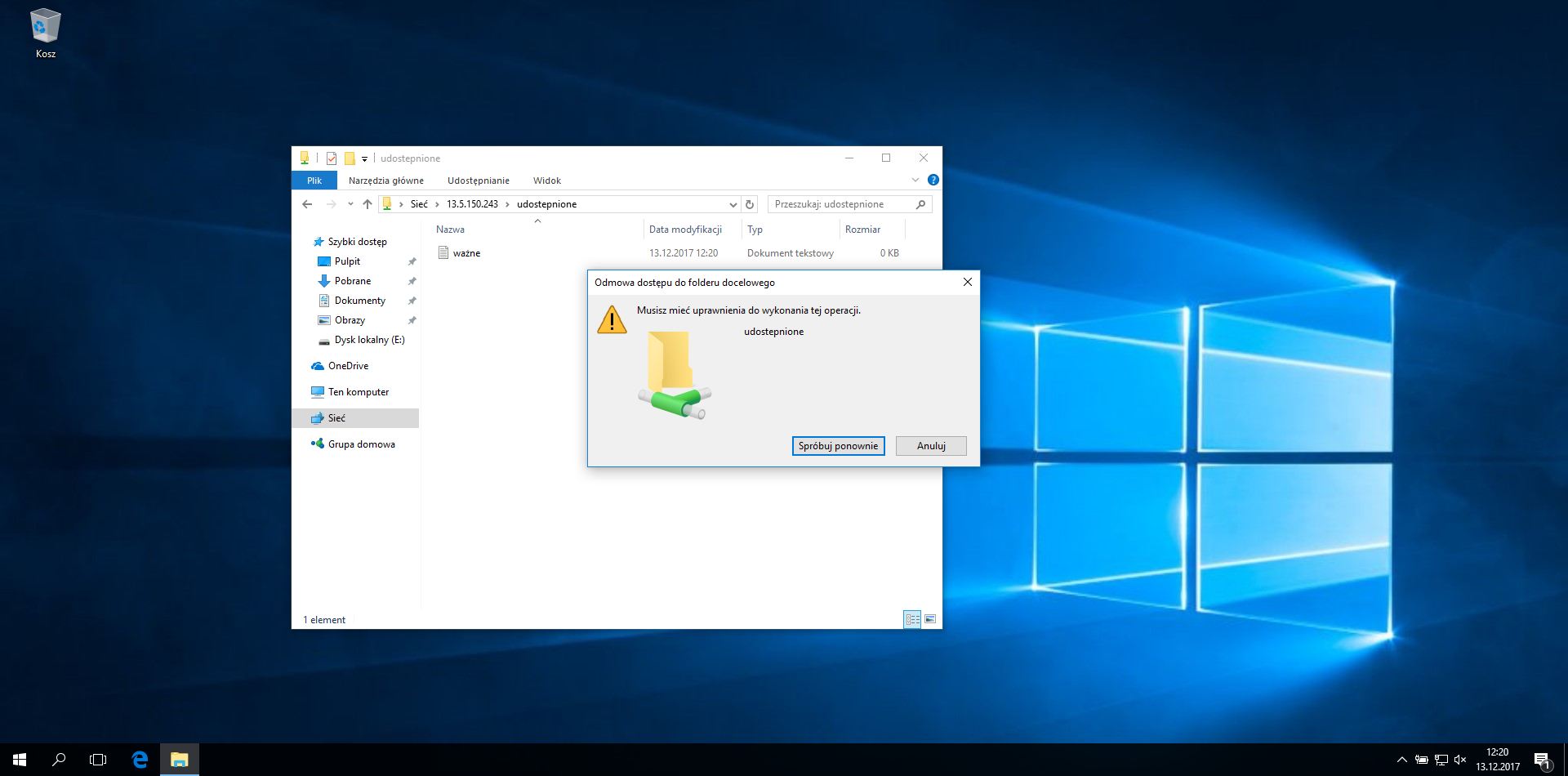 Próba otwarcia folderu – sprawdzenie uprawnień