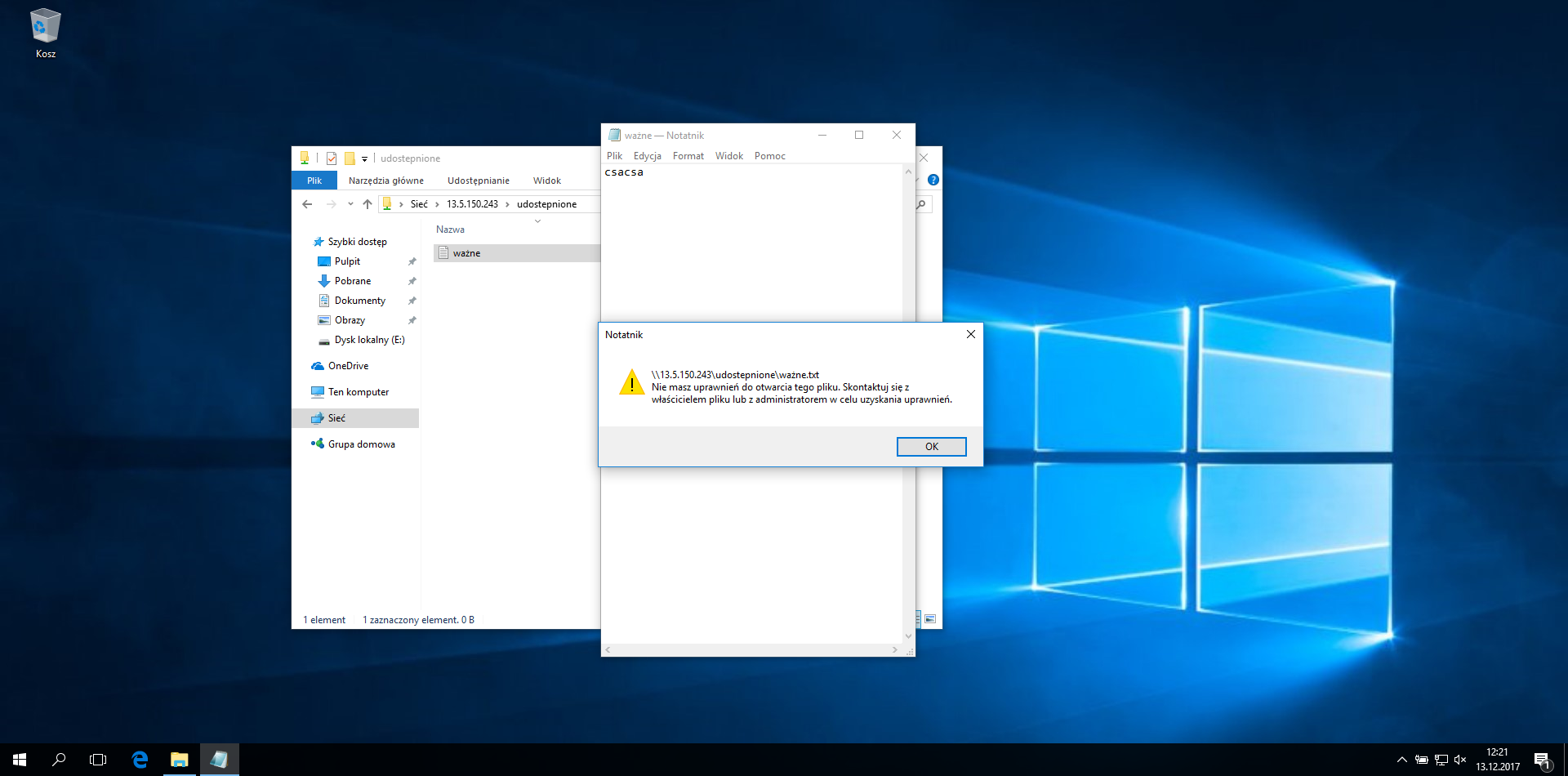 - Spróbuj otworzyć plik znajdujący się w udostępnionym folderze.